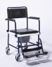 Конструкция рамы изготовлена из прочного алюминиевого сплава, складная, что обеспечивает удобство и легкость в сборке и переноске изделия. Каталка оснащена скошенными подлокотниками с мягкими накладками. Съемные подножки регулируются по высоте и отводятся в сторону для удобства посадки больного. Задние полиуретановые колеса увеличены по размеру и не требуют подкачки, что облегчает эксплуатацию кресла вне помещения. На ручках, предназначенных для сопровождающего лица, установлены тормоза. Сидение и спинка сделаны из прочной дышащей ткани.